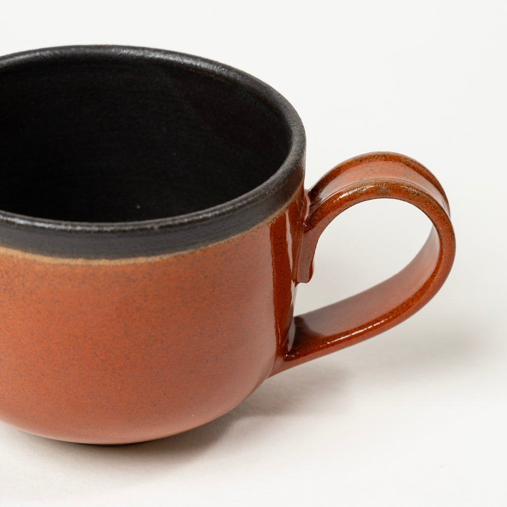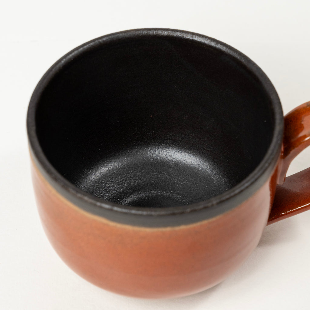 The unique burnt orange exterior and contrasting black interior give it a subdued vibrance and modern chic charm. The unglazed foot helps it stay balanced on any surface. Pair it with the Burnt Orange Bowl for a delicious snack time!