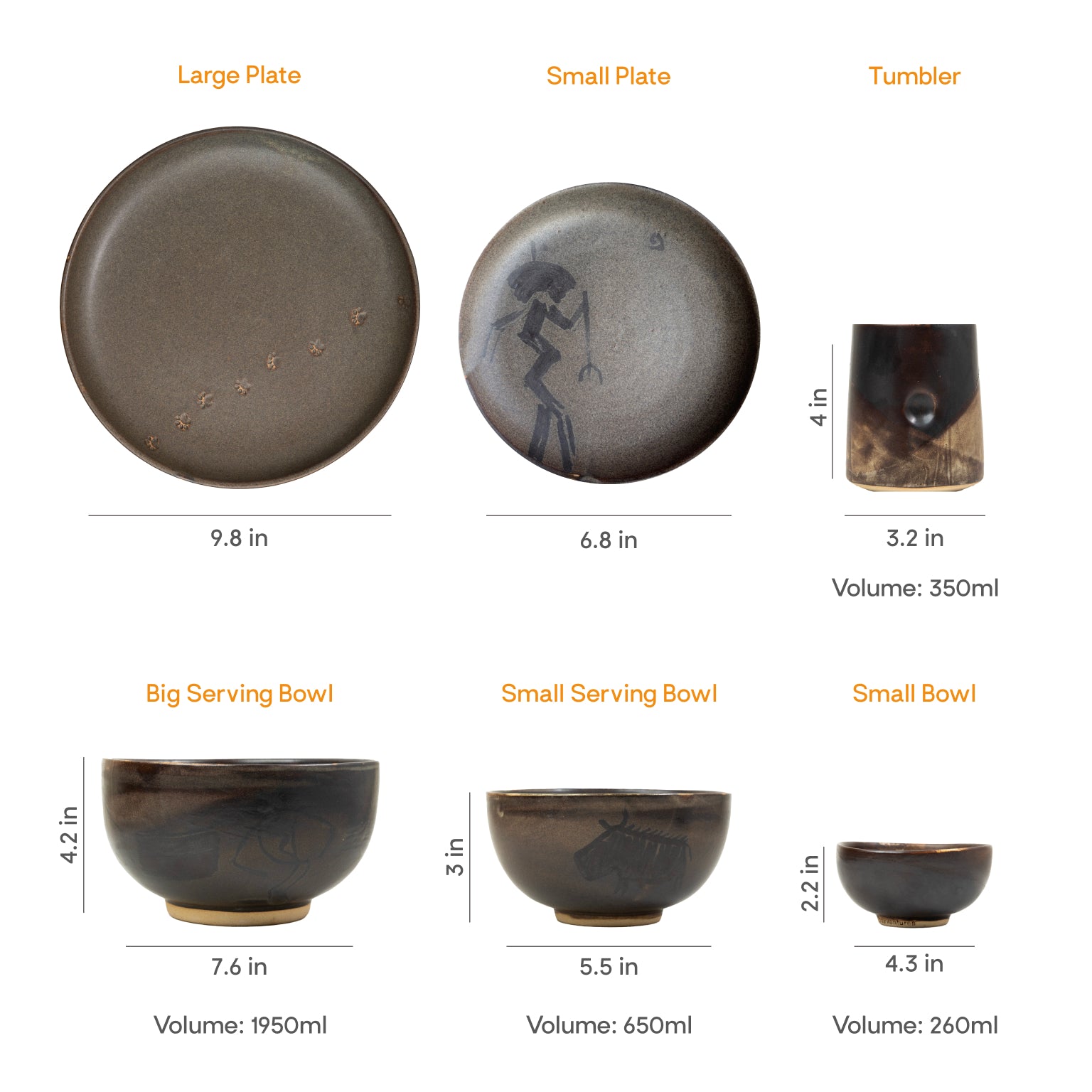 Bringing thoughtful stories to modern tables, the Echoes of Bhimbetka collection draws inspiration from the timeless artistry of Bhimbetka cave paintings, one of the oldest known rock art.
