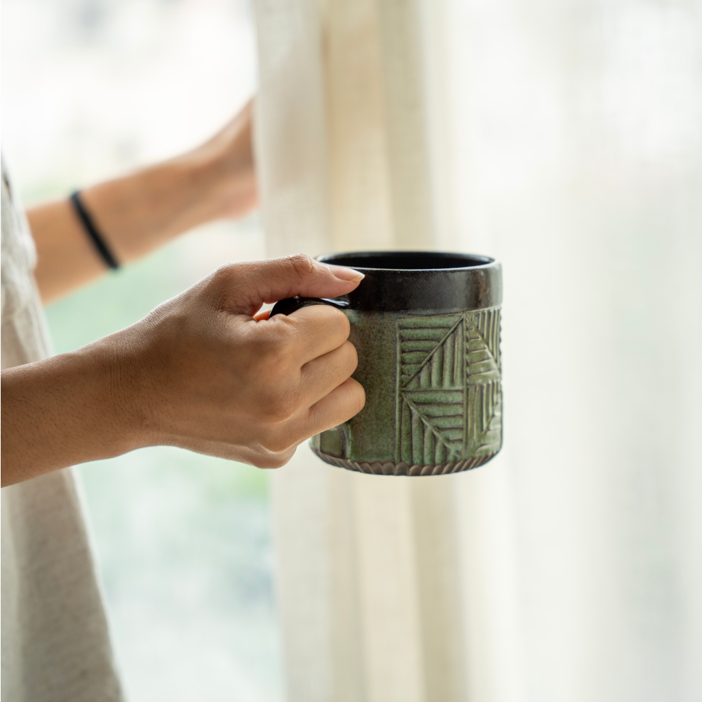 An ode to craftsmanship, this handcrafted mug is a union of art that has travelled through time and functional artistry for modern lifestyle. Elevate your tea or coffee time with its quiet charm and ergonomic form.